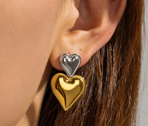$20.00Heart Double Drop Stainless Steel Earring Tic Tok: Mixed silver hoop/gold heart
