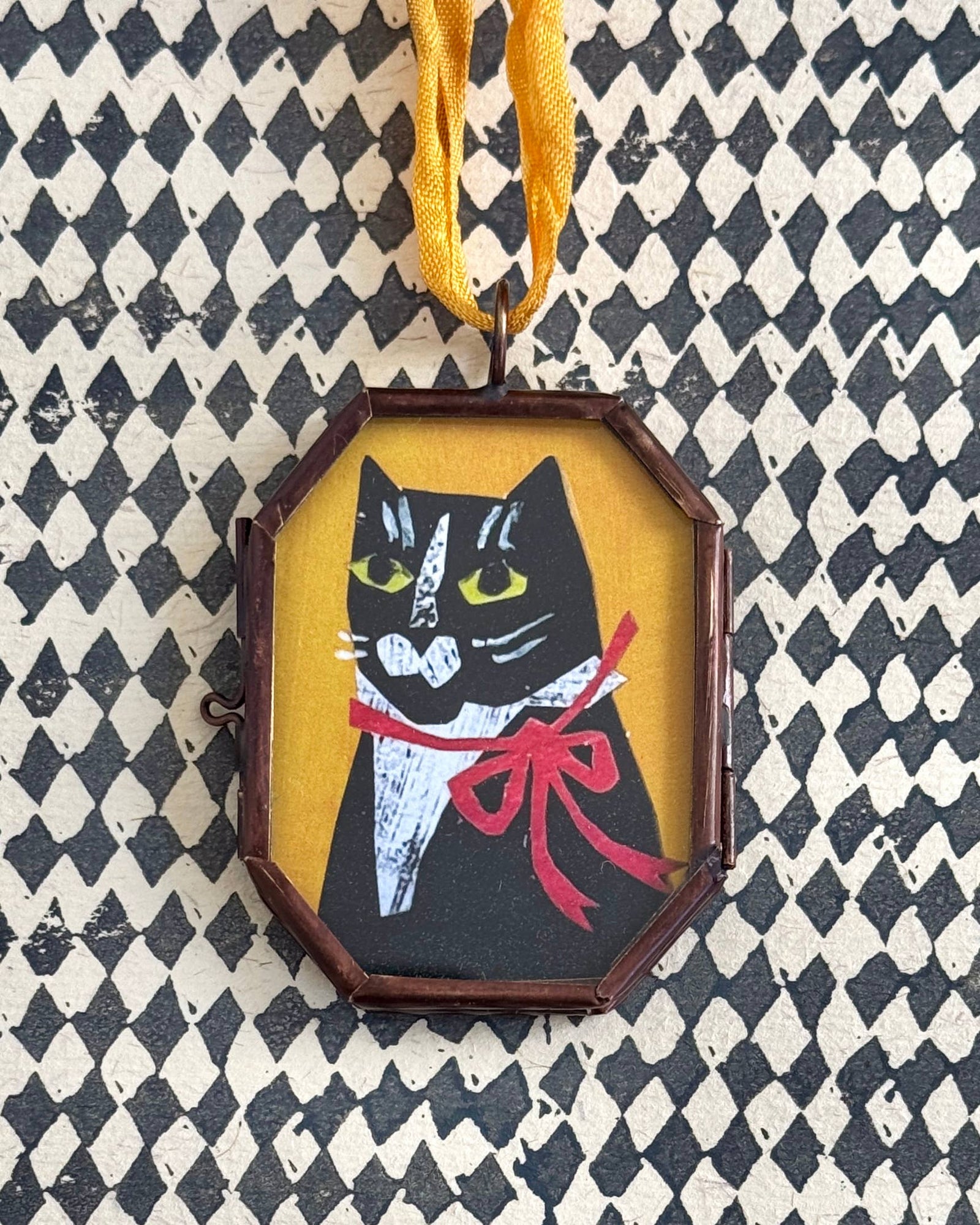 $15.00Tuxedo Kitty ~ Art Locket Ornament Vintage Decor Handmade