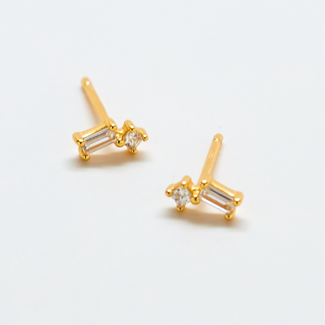 Sold OutWhite Geometric Baguette Gold Vermeil Stud SINGLE