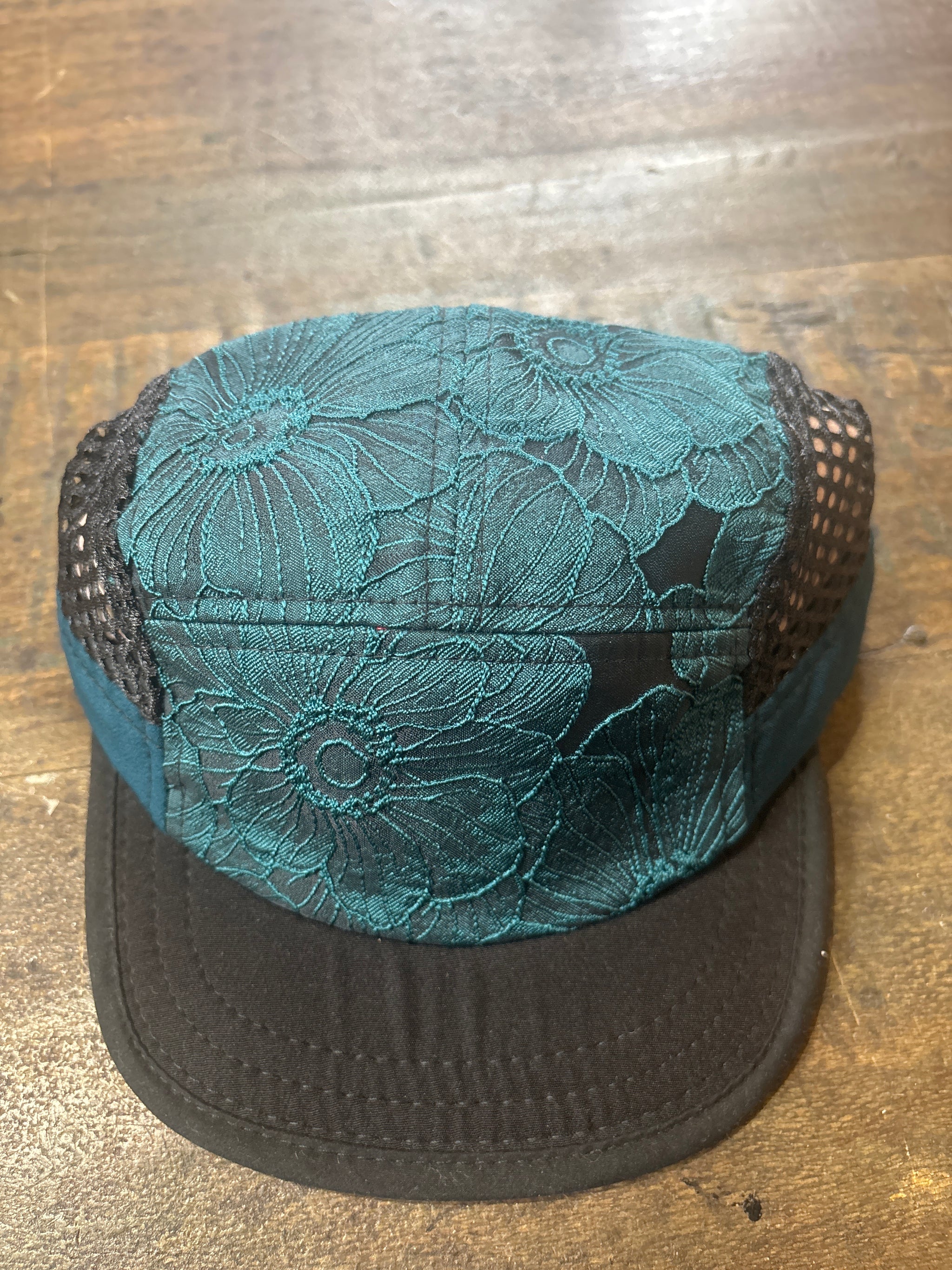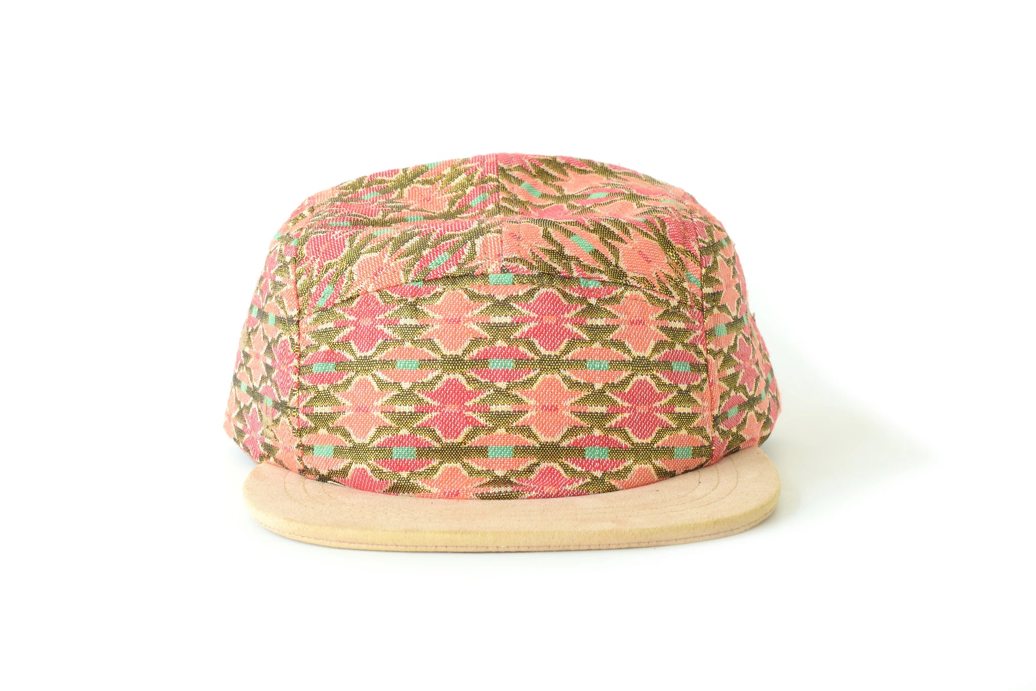 The five-panel hat is handmade with dead stock fabric from all over the world, and has a shorter brim than our standard five-panel.