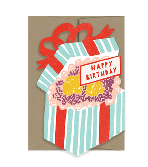 The Happy Birthday Gift Card, a beautifully retro birthday card that looks like a present bursting with flowers — perfect for sending a thoughtful note wrapped in joy.
