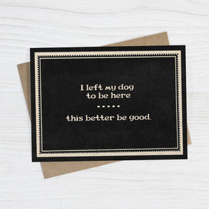 I Left My Dog to Be Here. This Better Be Good - Funny Card - Thunder Moon Collective