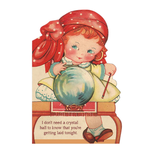 Share a flirty and dirty card with your significant other this Valentine's Day, an anniversary, or just for fun!" I Don’t Need a Crystal Ball to Know That You’re Getting Laid Tonight". A vintage-inspired greeting card reimagined.