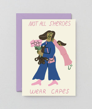A playful celebration of the heroic lady in your life. Designed in a humorous and attractive style, this greetings card comes packed with a corresponding lavender envelope.