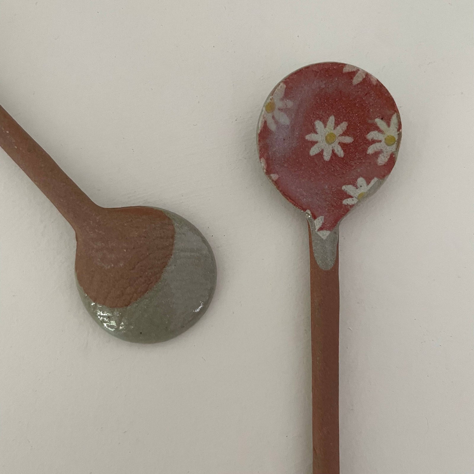 $30.00Flower print small handmade Japanese pottery tea spoon: Red