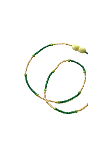 This handmade necklace is crafted with care using a curated selection of vintage and thrifted materials. It features a mix of seed beads