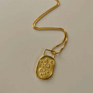 A thin box chain necklace that holds a beautiful flower pendant with an engraving ‘flowers need time to bloom’ at the back. Every flower blooms in its own time and so will you.