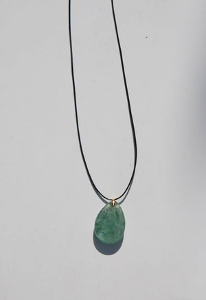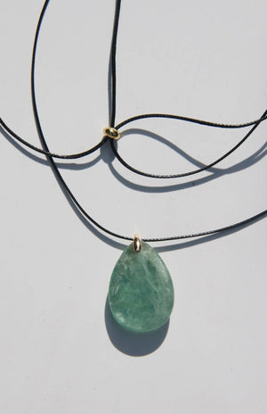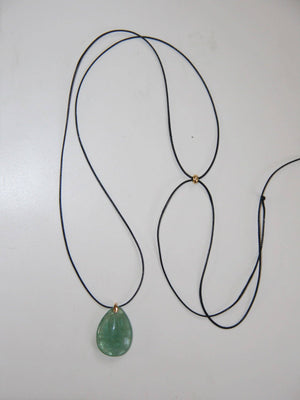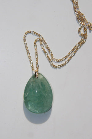 Elevate any ensemble with this opulent long pendant necklace, adorned with an oversized Green Aventurine gemstone in the shape of a teardrop. Select your preferred chain style - a delicate Figaro chain or an adjustable cord - to complement your personal style.