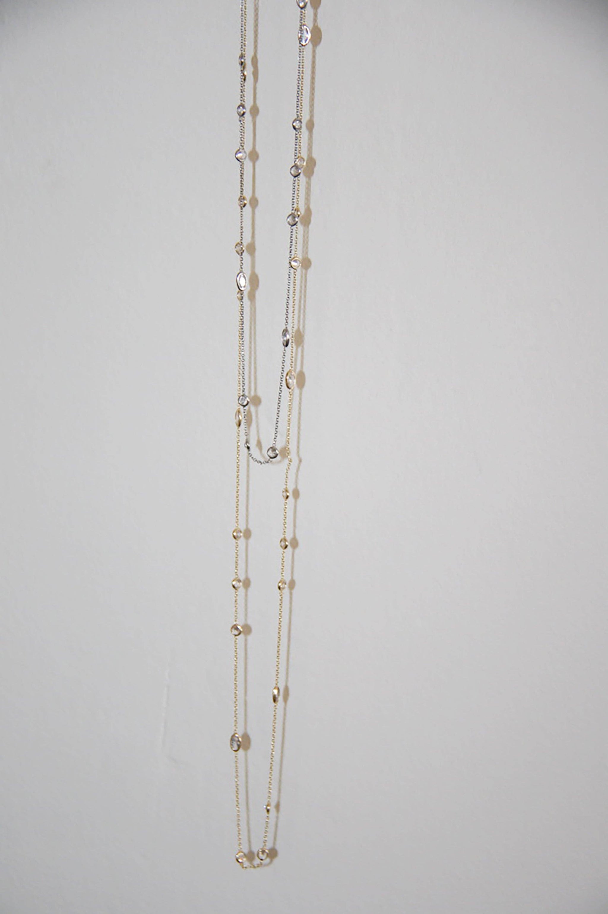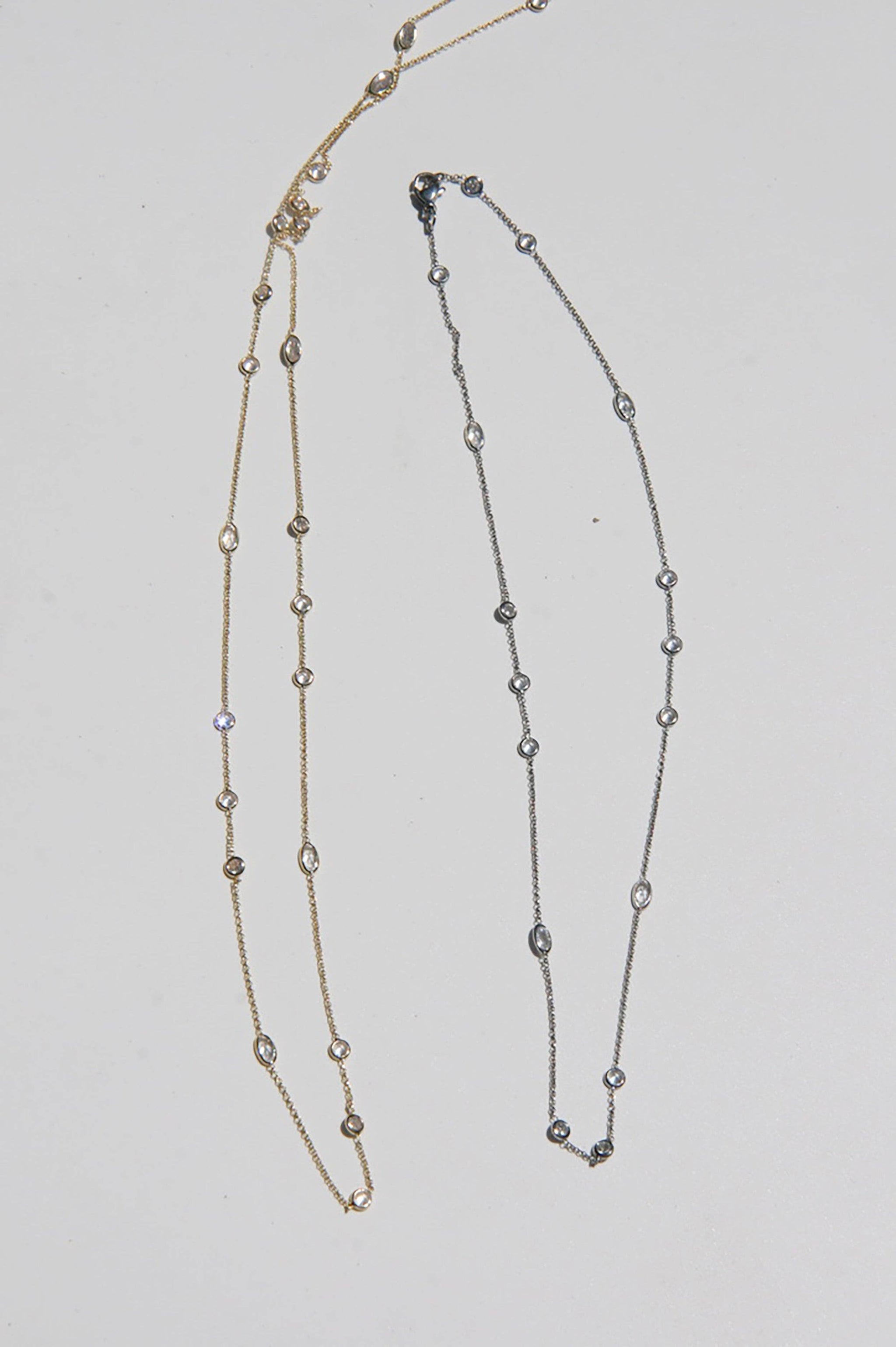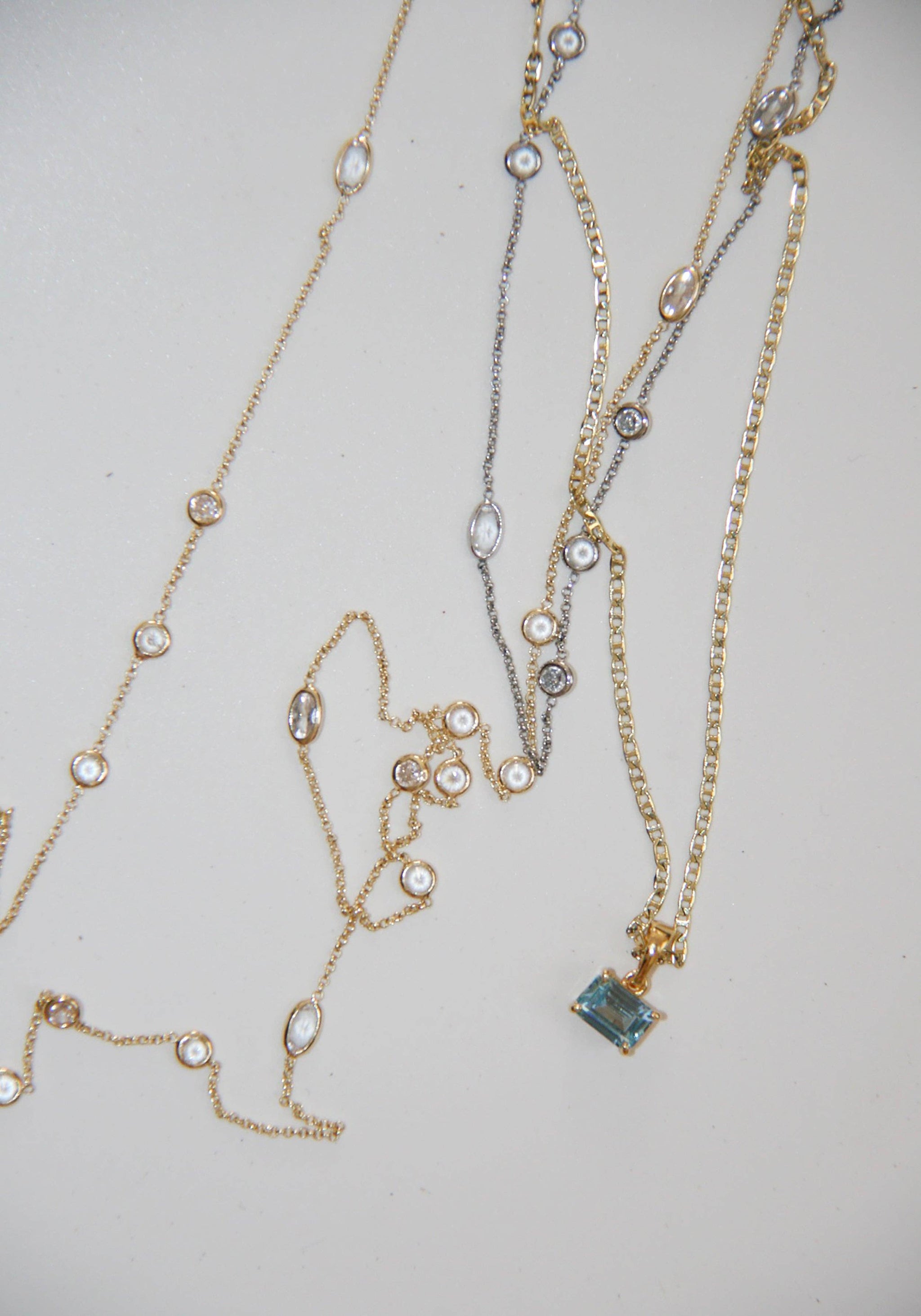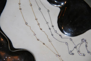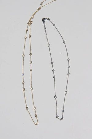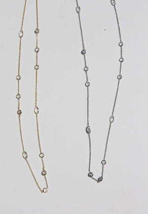 Not not your grandma's diamonds. Sparkling bezel-set round and oval shape stones, fixed on a delicate rolo link chain. Vintage-inspired, modern re-styled. * Zircon * 1mm Rolo Link * Gold Filled Clasp