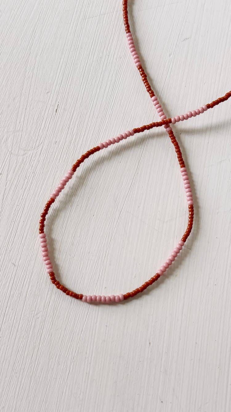 $65.00Beaded Necklace: Length 18" Pink Brown