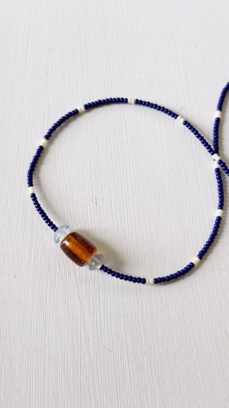 $60.00Glass Bead Necklace Navy Brown