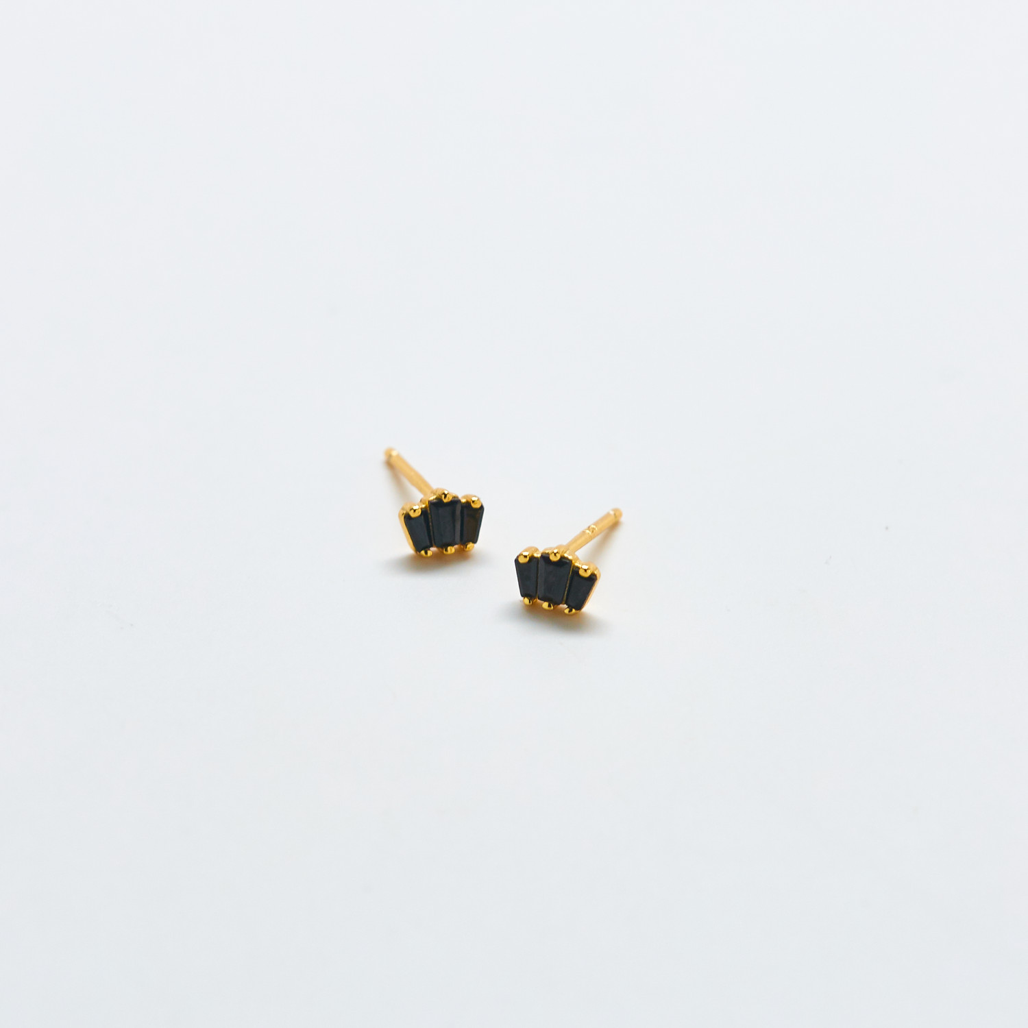 $15.00Black Trio Baguette Gold Vermeil Geometric Stud Earring - SINGLE