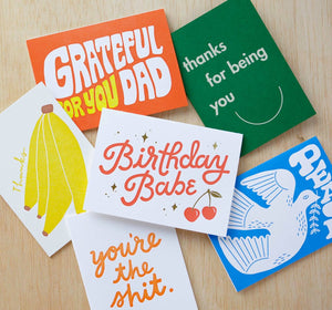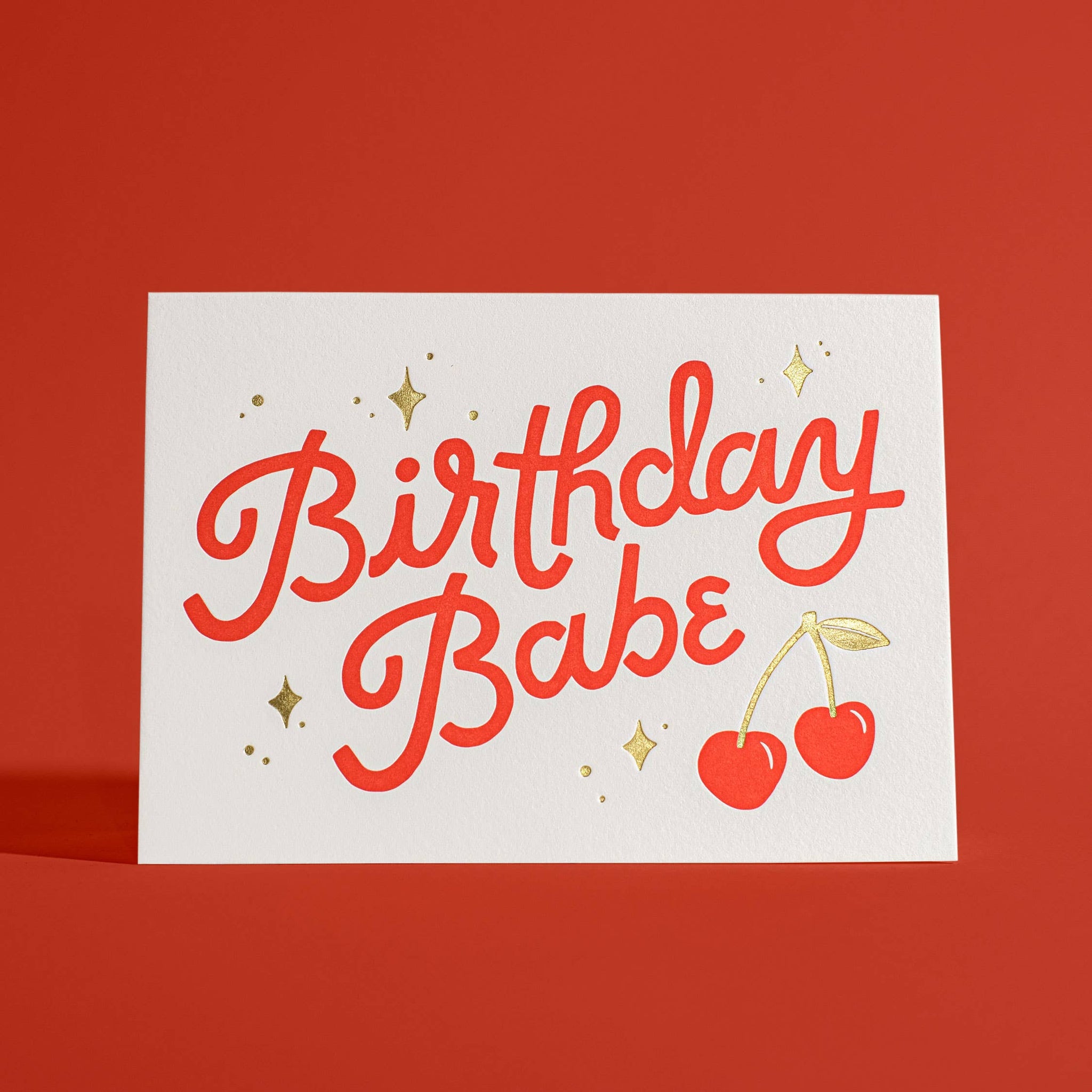 Birthday Babe with cherries letterpress and gold foil printed greeting card