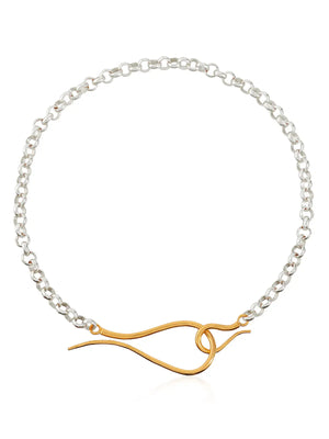The Hook necklace is classic statement necklace with a twist. Made up of our signature belcher chain with a large hook fastening at the front. The ultimate bold necklace to suit all occasions. Pair with other necklaces from our collection to create your own layered effect of wear by itself for an elegant unique look.