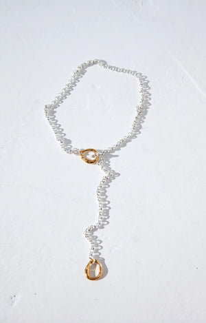 The Meridien Necklace is part of our newest collection. Wonderfully simple yet bold, it is a belcher chain in a two tone of silver and gold. Each end has our signature Meridien mould used in our matching earrings. The perfect summer necklace to match with all your outfits both day and night.
