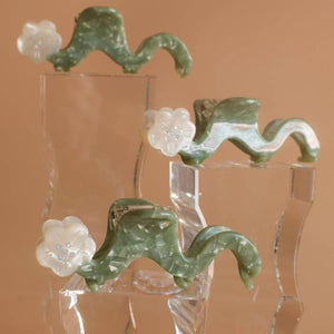 This little claw has a unique shape, but still holds hair securely in place! Great for half up styles, or get creative and use multiple claws to make an elegant flower crown.