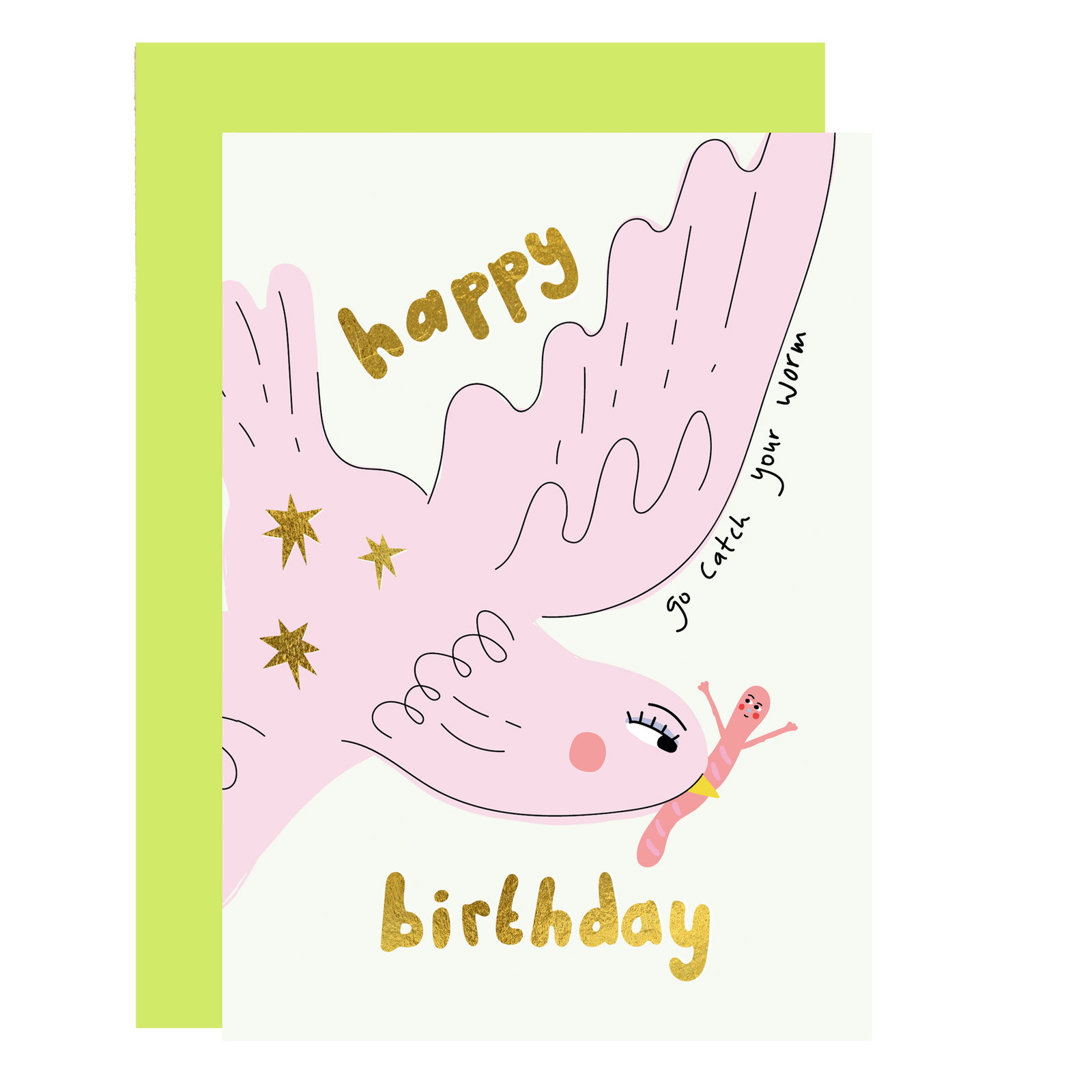$7.00Go catch your worm - birthday card (gold foil finish)