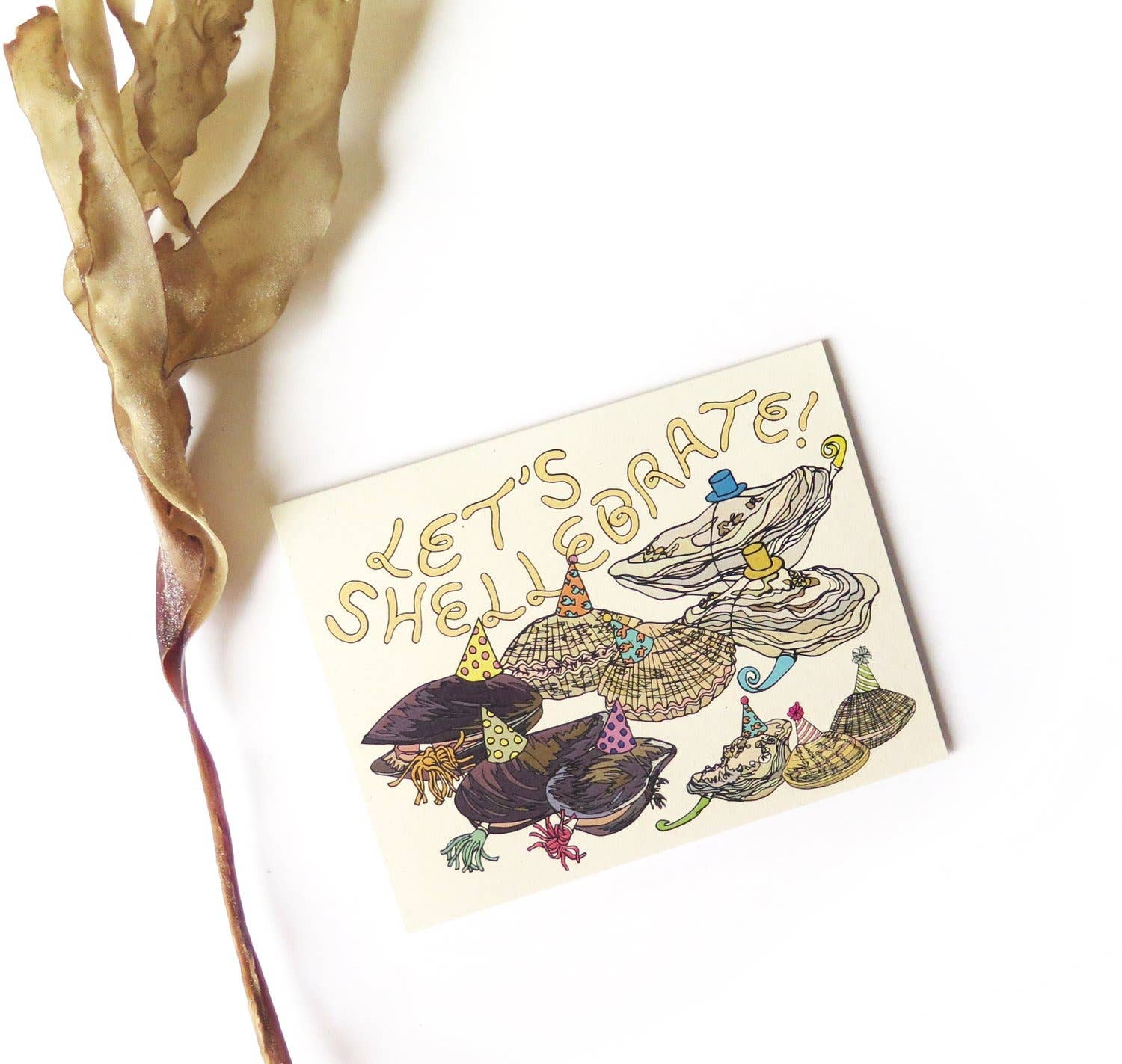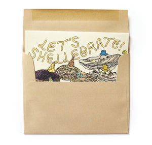 Shell-ebrating with the best of them! Details: - Blank on the inside - 4.25 x 5.5 inches - Recycled paper card and envelope - Biodegradable plastic sleeve