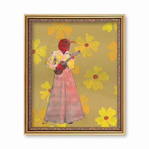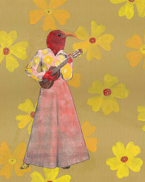 This fun bird is strumming her ukulele. Perfect for your tropical home, for a bird lover, or just for a cool dude! The original painting was created with collage and acrylic on canvas. Each print is signed on the front.