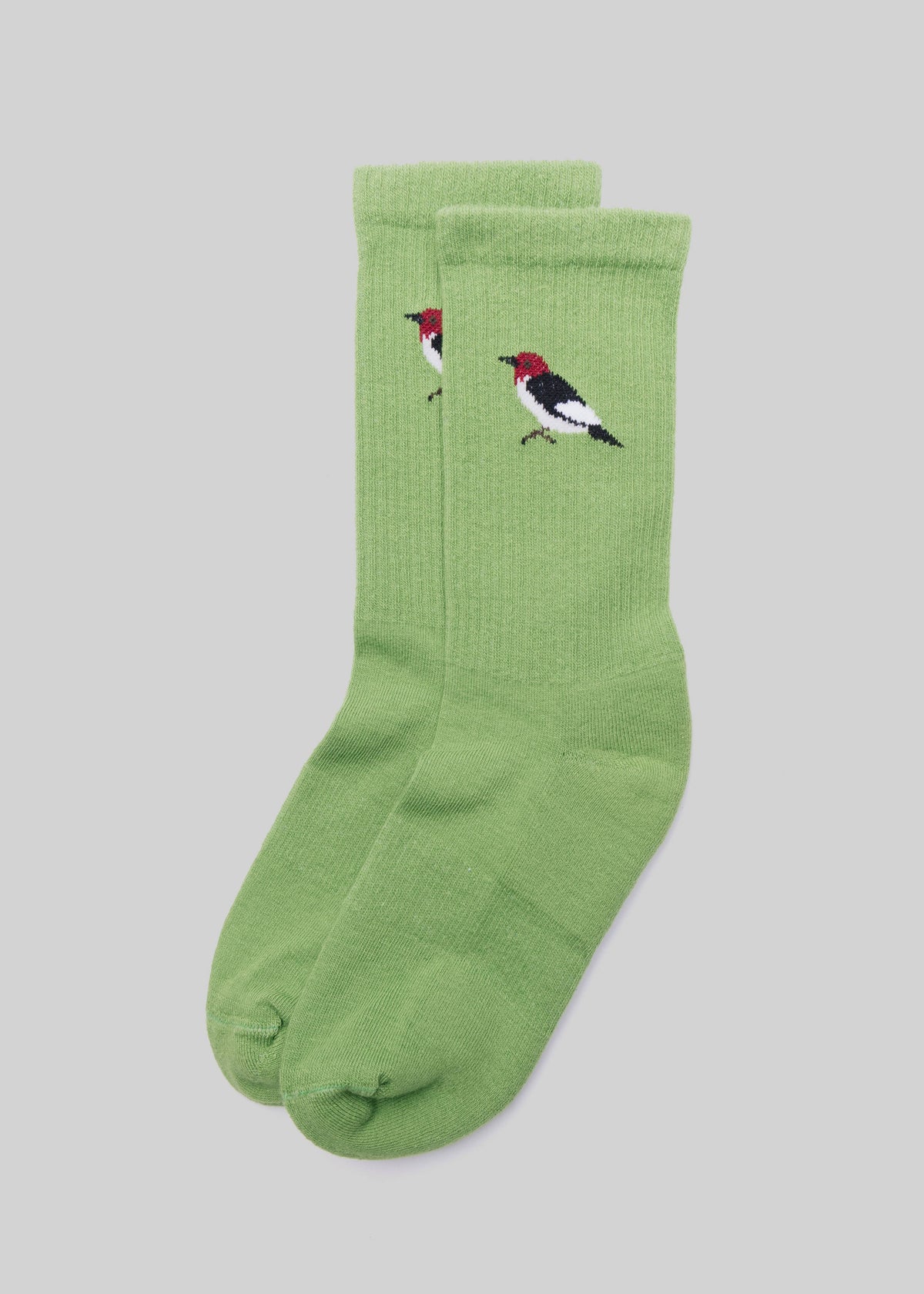 These crew length socks are knit from American-combed cotton, built with enough spandex to stay high on the leg.