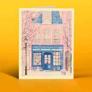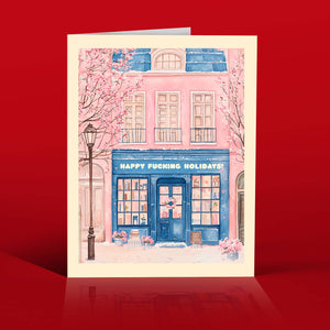 "Happy Fucking Holidays" French building Style No. MX.12 holiday greeting card, funny, christmas, funny holiday card, happy new year