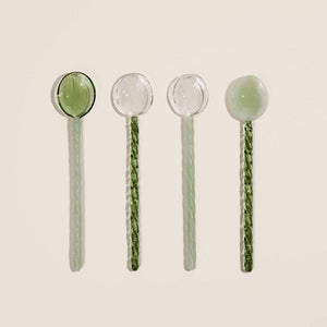 A handblown stirring spoons is the perfect utensil for stirring chocolate, ice cream, mixing drinks, and other creamy treats. Handmade from high-quality borosilicate glass. These attractive reusable glass spoons will look great in your kitchen and fit perfectly on any table or countertop. SPECS: - 4pc set of glass spoons - matcha series - Handblown glass spoons - Measurements: 5.9in x .9in -Spoons packaged together in a box CARE: - Recommended to hand wash your handmade piece ✨ Note: Due to lighting effects, the monitor's brightness/contrast settings, etc, there could be some slight differences in the color tone of the pictures and the actual item. ALL IMAGES ©KESSELLATE, 2022