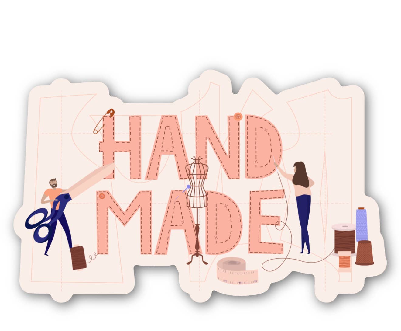 Celebrate your love for crafting with our Handmade sticker! This 3" durable vinyl sticker features a creative design with scissors, spools of thread, a dress form, and hand-lettered stitching details—perfect for makers, sewists, and DIY enthusiasts. Designed in Austin, TX, and printed in the USA, this sticker is great for decorating laptops, water bottles, or craft room supplies with a handmade touch.