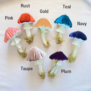 Handmade Velvet Mushroom Ornaments: Gold / Small