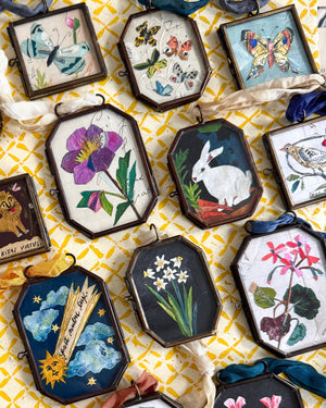 1.5" x 2" highest quality giclée print on 100% cotton paper - framed in petite antiqued glass locket frame.